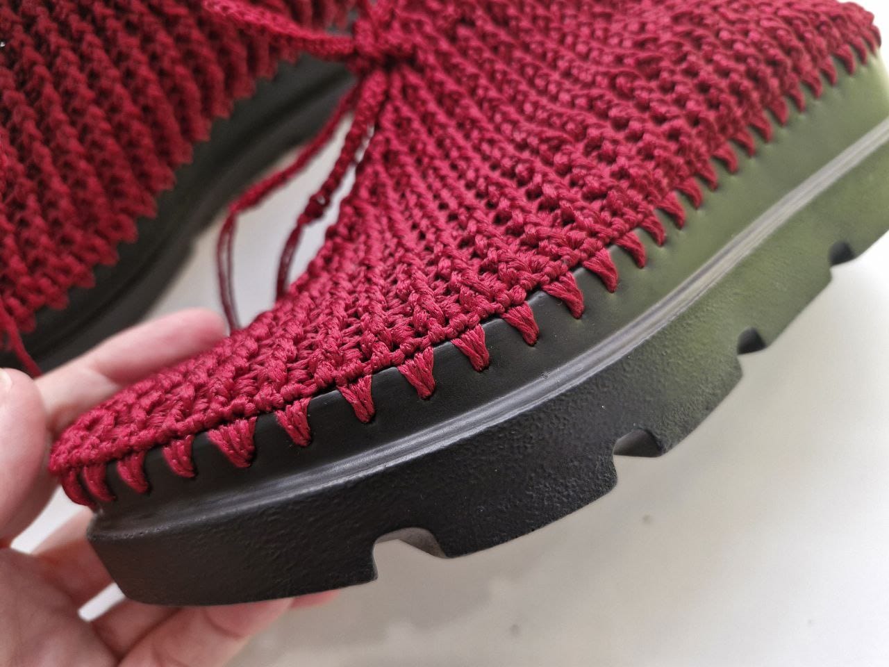 کفش بافتنی اسپرت، همان احساسی را منتقل میکند که از یک محصول دستساز انتظار داری؛ ترکیبی از گرمای کار دست، لطافت نخ کتان و راحتی واقعی هنگام قدمزدن. رویه کفش با قلاببافی دقیق و پاکیزه بافته شده و همین باعث میشود روی پا، سبک و قابلتنفس باشد و بعد از مدتی فرم طبیعی پا را به خود بگیرد. بافت کتان در عین نرمی، دوام زیادی دارد و نه پرز میدهد، نه شل میشود و نه بر اثر استفاده مداوم بدفرم خواهد شد. این جنس طبیعی طوری روی پا مینشیند که حتی در پیادهرویهای طولانی روزانه، اصطکاک یا فشار اضافی ایجاد نمیکند.