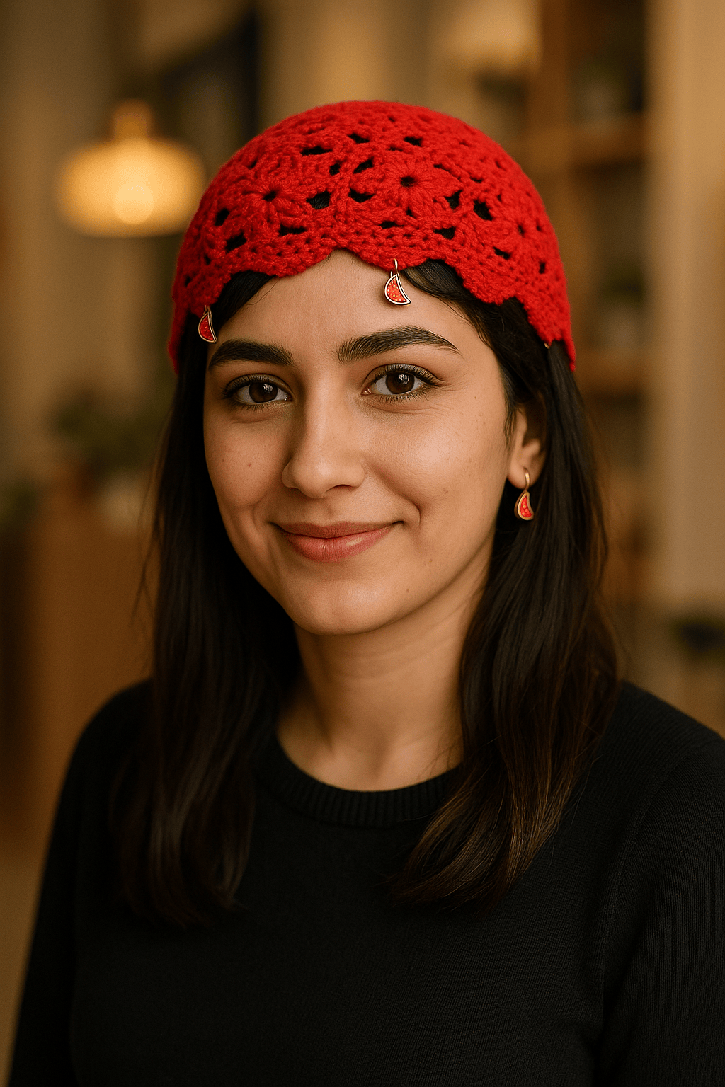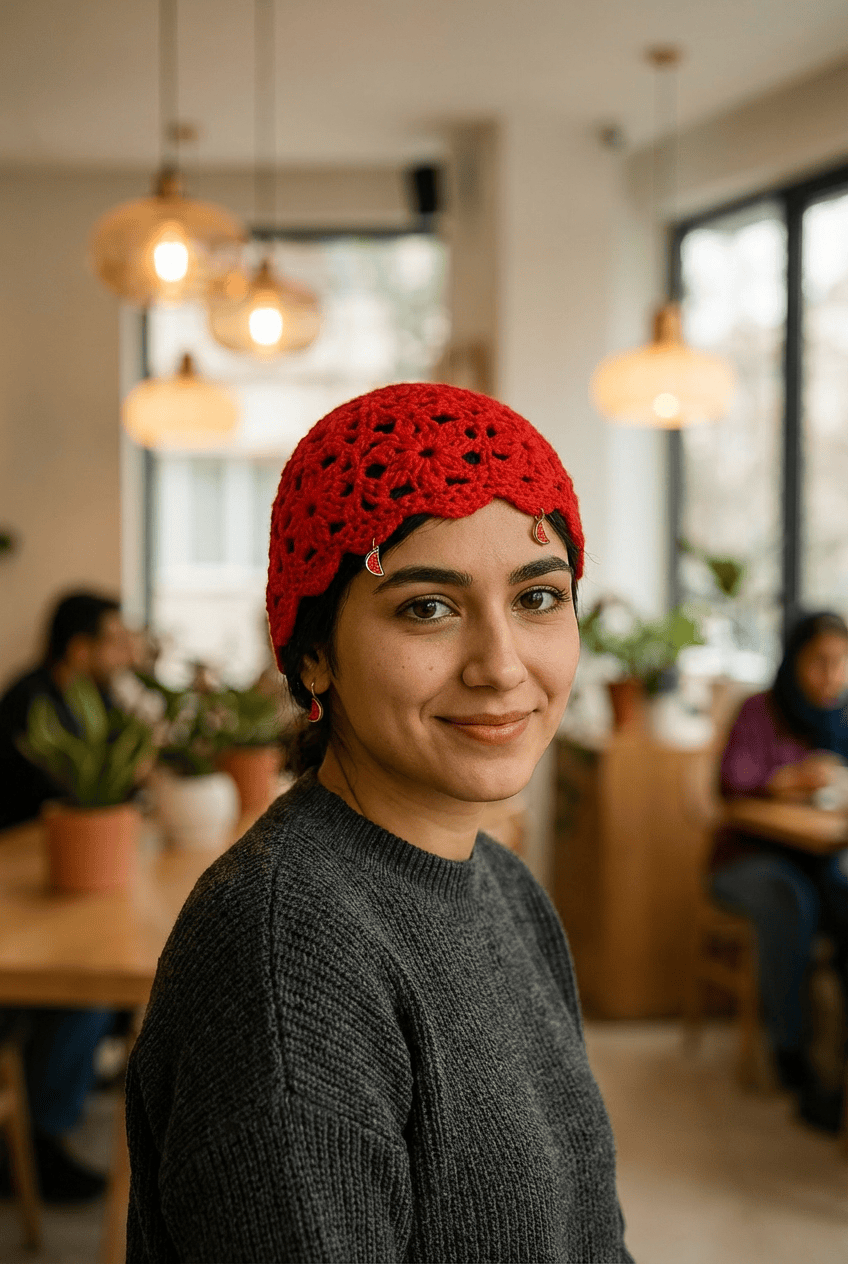 وجود آویزهای یلدایی (هندونه یا انار) حالوهوای جذابی به کلاه داده و آن را به یک اکسسوری خاص برای شب یلدا و عکسهای یادگاری تبدیل کرده است. اگر شال گردن یا شال قلاببافی دارید، این کلاه بهترین گزینه برای کامل کردن ست پاییزی–زمستانی شماست. سبک است، گرمِ ملایم است، و بهراحتی با اکثر لباسها ست میشود.